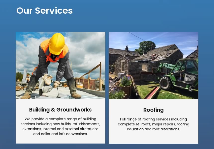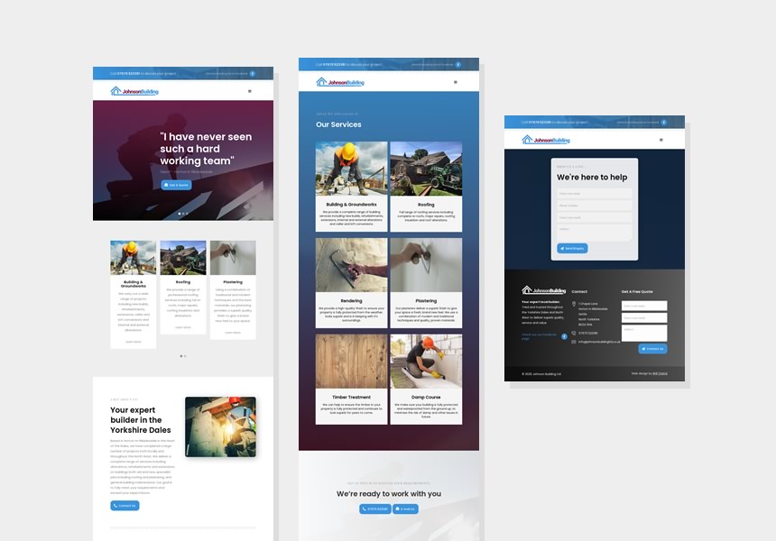 Design and build of a new website for Johnson Building Ltd, a Yorkshire Dales–based construction company providing a wide range of building services. The project focused on creating a clear, professional online presence to showcase their work, communicate the breadth of their services, and support new enquiries from residential and commercial clients.